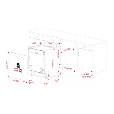 - Máy rửa chén lắp âm toàn phần